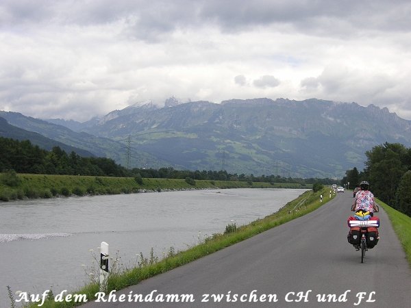 Auf dem Rheindamm geht es dann Richtung Österreich, die Sonne verwöhnt uns. Auch hier übertreten wir wieder unbemerkt und völlig frei die Grenze. Das gefällt mir gut!