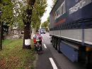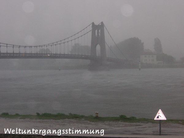 Das wird heute einen Hammertour für uns - nur das wissen wir morgens noch nicht! Die Croissants holt man sich selber in der nächsten Boulangerie. Da wir doch Genaueres über das Wetter wissen wollen, bringt Rudi gleich noch eine Zeitung mit: heute könnte es etwas Regen geben, Gewitter sogar, aber für die Tage danach lachen uns die Sonnen-Symbole an! Na bitte, geht doch. Und das bisschen Regen heute werden wir mit Würde ertragen. Wir sind in einer richtigen "Zockerkneipe" gelandet, in der man irgendwelche Scheine kauft und auf die Ausspielungen wartet, die in kurzen Abständen am Bildschirm veröffentlicht werden. Während der Wartezeit nervöses Sortieren der erstandenen Scheine (Lose? oder Bingo?), heftiges Ziehen an der Zigarette. Nach der Auslosung Zerreißen der Scheine und Neukauf...! Da man nicht wirklich weiß, worum es geht und auch der Landessprache nicht sooo mächtig ist, schaut man sich das Geschehen neugierig an und die Zeit vergeht recht schnell. Irgend etwas hat uns auch beim Besuch des dazugehörigen "Örtchens" erfreut, aber ich weiß nicht mehr genau... Ach doch: zum Abziehen musste man mutig den Finger in ein Loch stecken, um den Hebel zu bedienen. Auch die Stromkabel hingen äußerst abenteuerlich herum. Aber es war sehr sauber! Da wir die ersten Kilometer dieser Etappe schon vom Sommer kennen, müssen wir nicht ständig wieder auf die Beschreibung gucken und kommen gut voran. Dabei stellen wir fest, dass auch hier der/ ein Jakobsweg entlang geht. Wenn das nicht gut passt! Es zieht sich tatsächlich immer mehr zu, ein paar Tropfen fallen: Regenjacke an? Na gut, wird aber schnell zu warm, also Regenjacke wieder aus... lieber die paar Tropfen abbekommen. Wir fahren heute auch wieder mal auf der N86 - es geht, aber immer müssen wir das nicht haben. Im Übrigen haben wir dazu immer noch Gegenwind. Stand im Météo nicht irgendetwas von Nordwestwind? Wir kommen heute auch an der Stelle vorbei, an der wir im Sommer den Abbruch beschlossen haben! Ein gutes Gefühl, als wir daran vorbei sind! Ob wir uns nicht doch besser unterstellen sollen? Außerdem wäre es sowieso Zeit, eine Mittagspause mit Picknick zu machen. Gerade noch rechtzeitig biegen wir von der N86 ab und fahren nach La Voulte sur Rhône hinein. Dort können wir uns an der Tourist-Info unterstellen und erleben dort eine wahre Weltuntergangsstimmung! Es bricht ein heftiges Gewitter los, es wird stockdunkel, der Wind wird immer stärker und treibt Wellen auf die Rhône. Es hagelt, man sieht kaum noch etwas! Und kalt wird uns auch zunehmend. Der Wind hält sich nicht an eine Richtung und so "wandern" wir um den Pavillon des Tourist-Office herum, damit wir halbwegs im Trockenen bleiben. Ein etwas ungemütliches Picknick! Nach einer Stunde wird es wieder freundlicher und wir können weiter fahren. Da haben wir noch einmal Glück gehabt! Unser Ziel soll heute Montélimar sein, irgendein Camping soll da noch offen sein. Wozu habe ich wochenlang im Internet recherchiert?! Doch vorher müssen wir noch die Feuertaufe auf der N7 (da gibt es doch so einen alten Schlager.."National Sept..") bestehen. Da ist schon viel Verkehr! Vor allem viel LKW-Verkehr! Aber die Alternative wäre ein Überqueren der Hügel, auch nicht so prickelnd! Also, Augen zu und durch! Eigentlich finden wir es sooo schlimm nicht - erst als Rudi mir das Foto zeigt, was er von mir gemacht hat...! Von weitem taucht die Silhouette des Kernkraftwerkes von Coucourde auf - mit dem verharmlosenden Bild eines Kindes drauf - Kunst am Bau auf französisch. Und dann geht es Richtung Montélimar Centre! Das hätten wir uns auch sparen können. Erst fahren wir ziemlich auf Umwegen bis zur Tourist-Info in der Stadt - mit wahnsinnig viel Verkehr, der Feierabend macht sich bemerkbar. Hier in der Stadt nehmen die Autofahrer lange nicht so viel Rücksicht auf uns Radfahrer wie auf der N86 oder der N7. Das mürbt, es stinkt - elende Dieselautos! (Das passiert uns übrigens noch öfter, dass Campingplätze, die in Heftchen von 2006 oder im Internet als geöffnet gelten, schon zu haben! Verbesserungsvorschlag: die Telefonnummer dabei haben! - Hatten wir aber nicht immer.) Als wir etwas ratlos in unseren Unterlagen nach der nächsten Möglichkeit suchen, spricht uns ein französisches Ehepaar mit der guten Absicht uns zu helfen an. Aber das wird dann auch nicht einfacher, weil man auf uns einredet, ohne dass wir dem Redefluss wirklich folgen können. Schade, dass wir inzwischen schon so müde sind, denn die nächste Strecke ist wirklich schön! Und nun sind wir in Viviers, wo ein Camping offen sein soll - laut Information aus Montélimar. Viviers ist ein hübscher Ort, schön gelegen - auf einem Berg! Na wunderbar! Maulend fange ich irgendwann an zu schieben. Die Schilder zum Camping führen: ja wo wohl hin? Immer weiter die Straßen hoch! Und als wir vor dem Eingang stehen - Fermé! Ist es zu glauben! Rudi ruft (wie ein alter Franzose - ich bin stolz auf ihn) vom Handy aus den Camping an - man weiß ja nie - und siehe da, es ist ein anderer Campingplatz gemeint! Der ist offen und noch 2 km weiter! Aber jetzt geht es wenigstens bergab und dann kommen wir auch endlich an! Wo der seine 4 Sterne versteckt hat, wissen wir allerdings auch nicht. Aber das ist uns egal. Man kann duschen und wir haben glücklicherweise vorher Nudeln, Soße, Rapé und eine Flasche Rotwein gebunkert! Man merkt dann doch schnell, dass es Herbst ist; abends wird es ziemlich feucht hier, aber man kann es nachts noch gut im Zelt aushalten. |