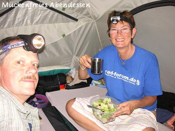 Wir frühstücken im Bistrot, das zum Campingplatz gehört. Es hat etwas den Charme von alten Jugendherbergen. Eine Jugendherberge gibt es übrigens auf dem Platz auch und die Schüler einer Oberstufenabschlussfahrt lungern vor dem Bistrot herum und warten auf ihre Heimfahrt. Heute fahren wir bis Arles, das ich mir noch einmal angucken wollte, nachdem wir vor ungefähr 10 Jahren bei unserem ersten Provence-Urlaub nur ganz kurz hier waren ... damals war ich über den Campingplatz dort entsetzt und wir sind deshalb ziemlich schnell wieder geflohen. Na ja, wahrscheinlich fänd ich den heute gar nicht mehr soooo entsetzlich, man lernt ja dazu. Wir haben inzwischen schon alle möglichen Qualitätsbeispiele von Campingplätzen gesehen. Das Wetter ist super heute, die Sonne scheint und im Laufe des Tages wird es immer wärmer, geradezu sommerliche Temperaturen herrschen am Nachmittag. Besonders aufregend ist die Landschaft heute nicht, aber manche Passagen sind recht beschaulich. Wir fahren an Schilfflächen vorbei, es gibt Pinien und dort riecht die Luft wie in den Landes, an der Atlantikküste. Dann wieder sieht man Obstplantagen, deren Bäume sich vor dem blitzblank geputzten blauen Himmel leicht herbstlich färben. Auf der Straße herrscht kaum Verkehr - was will man mehr! In Vallabrègues kaufen wir für unsere Mittagsrast ein. Es ist ein kleines verschlafenes Städtchen mit alter Bausubstanz. Wo gibt es denn etwas zu kaufen? Leichte Panik breitet sich aus, denn es ist kurz vor Mittag und der nächste Ort wäre erst Arles. Und Wasser brauchen wir auch! Als wir so etwas wie ein Geschäft finden, sind wir ganz froh - aber die Auswahl der angebotenen Ware ist mehr als übersichtlich. Nachdem wir uns dort eher notdürftig, dafür aber teuer versorgt haben, sehen wir ein kleines Stückchen weiter noch ein Geschäft, das eher ein normales ausreichendes Angebot hat, na ja, dort holen wir noch die unvermeidlichen Knackis und als Schmankerl ein Tütchen schwarze Oliven. Wir haben zunächst Tarascon als Ort für die Mittagspause auserkoren. Als wir dort ankommen werden gerade die Reste des Marktes zusammengekehrt und wir finden keinen uns genehmen, idyllischen Platz für das Picknick. Eigentlich ist das ein ganz netter Ort mit Burg und Kirche, doch gerade jetzt nicht so anheimelnd. Wahrscheinlich ist das im Sommer und dann abends ganz anders. Wir fahren also über die Brücke nach Beaucaire. Dort pulsiert das pralle Leben am Hafen, der voller Freizeitboote ist. Kein Wunder, hier ist die Verbindungsstelle des Kanals zwischen Rhône und Sète und der Rhône. Auf diesem Kanal gelangt man bis zum Canal du midi, dann in den Canal latéral de la Garonne und somit bis zum Atlantik. Inzwischen ist es so warm, dass wir Schatten suchen. Wir finden ihn an einem kleinen Platz mit Brunnen unter Platanen. Dort leisten uns zunächst etliche orientalische Männer Gesellschaft, verschwinden aber dann einer nach dem anderern - Rudi meint, wahrscheinlich müssten sie jetzt alle nach Hause, weil das Mittagessen fertig ist! Derweil sitzen die Bootsbesitzer in den gut gefüllten Lokalen entlang des Hafens und tafeln dort. Der Weg zum Camping dient noch einmal der Abhärtung in Sachen Vekehrserfahrung: da in dieser Richtung wohl auch Supermärkte liegen, gibt es viel Verkehr und als Sahnehäubchen einen Riesen-Kreisverkehr mit mehreren Spuren! Und wir mit unseren Rädern mittendrin! Auf die Frage, ob es denn überhaupt Mücken gäbe, sagt der Patron, es wären nicht mehr so viele wie im Sommer , aber es gäb schon einige! Na gut, für einige haben wir ja Autan als "Waffe" mit. Im Übrigen hat Rudi dann ohne zu zögern ganz schnell eine Flasche des oben erwähnten Anti-Moustique für 10 Euro gekauft! Wir haben uns dann mit diesem Zeug nach dem Duschen eine Ganzkörperanwendung gegeben - vorsichtshalber später auch noch mal auf die Klamotten drauf! Dann war es ertragbar - für einige Zeit! Dann mussten wir "nachbehandeln"! Auch die Zelteingänge (beliebte Mückensitzplätze) wurden eingesprüht! Nach dieser Erfahrung ist die Vorstellung, dass wir uns auf dem Platz inmitten von angriffslustigen Mücken etwas kochen sollen, nicht mehr so prickelnd und wir fahren erst einmal wieder nach Arles. Dort gehen wir einen Kaffee trinken und treiben uns noch etwas in der Stadt herum... Schließlich beschließen wir, uns mit einem Fertig-Salat und einer Flasche Rotwein ins Zelt zurückzuziehen. Das ist dann auch sehr gemütlich und mückenfrei! Auf jeden Fall weiß ich: nach Arles muss ich nicht noch einmal! Es liegt nun mal in der Camargue! |